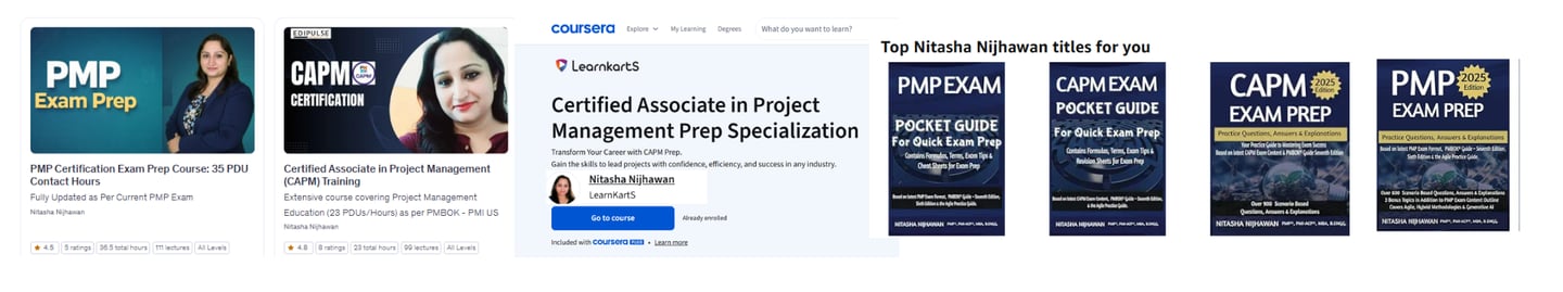 I had the privilege of being trained by Nitasha, an excellent PMP-certified coach, during my 35 hours of live PMP training. Her depth of knowledge, structured approach, and clarity made every session impactful and easy to absorb. She also provided exceptional support during my PMP registration process. She proactively guided me through the requirements, stayed connected throughout, and ensured my application aligned perfectly with PMI standards.